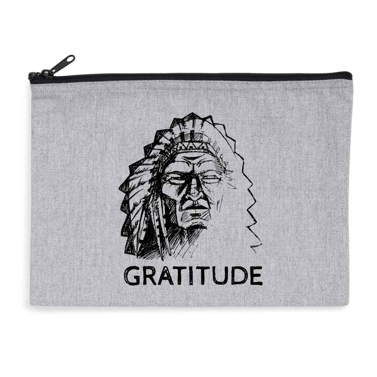 Gratitude by 7 Ramos is a black and white charcoal illustration portraying a Native American figure with the word Gratitude below. The work combines sensitivity and strength, emphasising expression through tonal contrast and texture.